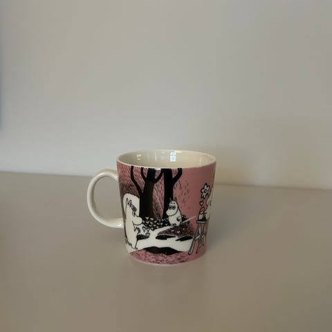 Vaaleanpunainen muumimuki.
