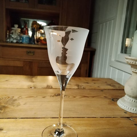 Wirkkalan suunnittelema Romantica snapsilasi. Korkeus 8,5 cm ja halkaisija 4 cm.