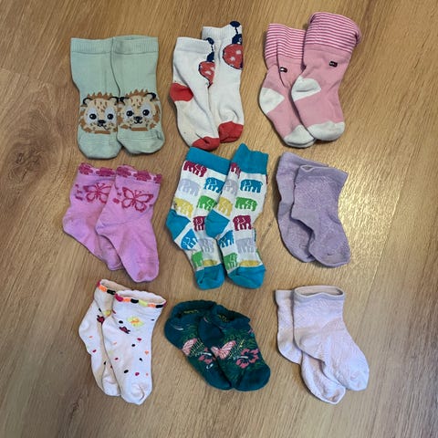 Hyväkuntoisia puhtaita, pestyjä ja ehjiä lasten sukkia. Useita eri kokoja. VAIN NOUTO INKOOSTA.