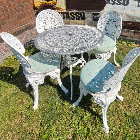 Uudenveroinen laadukas cane-line puutarha kalusto. Neljä tuolia ja pöytä upealla kivi tasolla. Tuoleihin myös cane-line pehmusteet. Koko setti hintaan 1000 euroa. Kruunukaluste myy tätä.