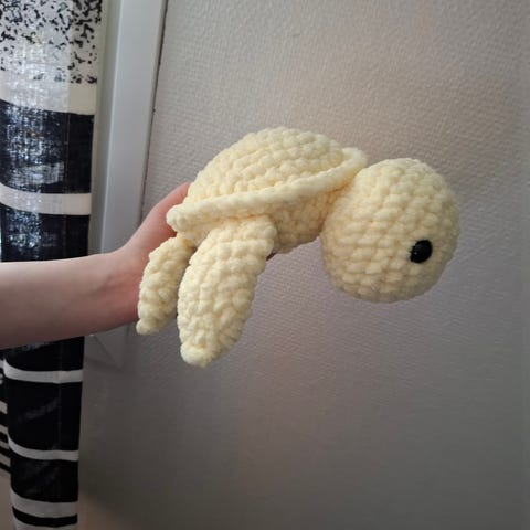 Täytteenä vanu, muoviset silmät, pehmeästä langasta valmistettu.
