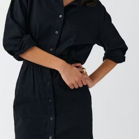 Kohokuvioinen mekko puuvilla-pellavakangasta. Yläosasta koko xs, kai-kai noin 32 cm venyttämättä, venyy noin 39 cm asti. Vasemmassa kyljessä vetoketju ja lantiolla tasku. Lantion 1/2mitta noin 45 cm, mutta venyy vielä tästä. Pituus noin 120 cm.