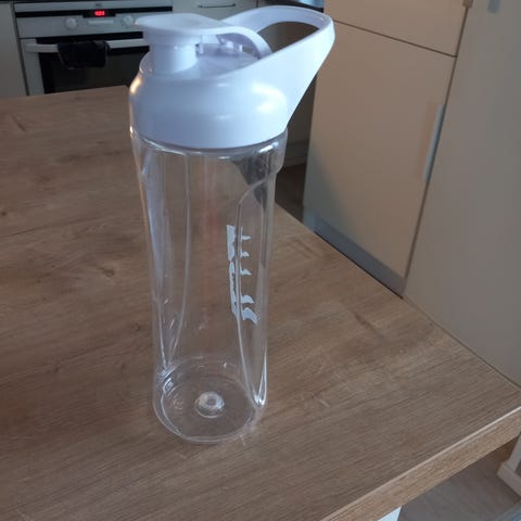 Muovinen juomapullo pillillä, pillimuki, vesipullo.