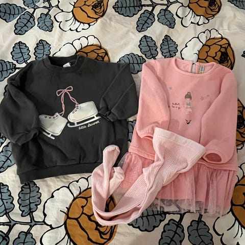 Vaalean rosan väriset puuvilla legginsit, harmaat trikoo housut eläin aiheella, lyhythihainen t-paita leppäkerttu kuvioilla ja nepit selkäpuolella sekä ( reilun kokoinen) t-paita pupukuviolla. Ehjät, puhtaat ja tahrattomat. Postitus postituskulut lisäten hintaan tai nouto Inkoosta. Maksu MobilePay tai käteinen. Myös toridiilillä.