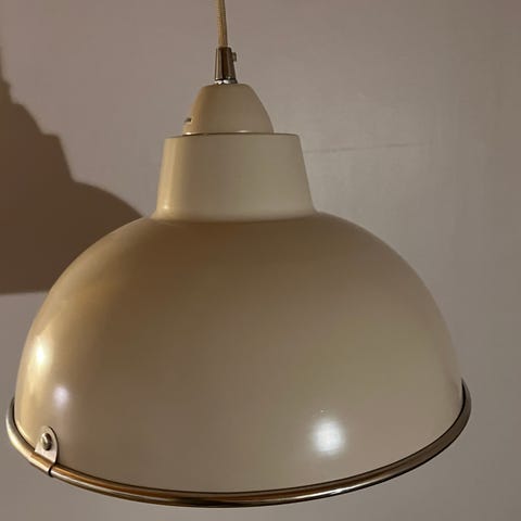 Metallinen valaisin, jossa 6 kpl E27 lamppuja varjostimilla, toimiva.