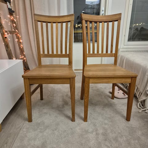 Muuten hyvät ja tukevat tuolit Yksi rikki sivulta Yhteihinta kaikille
