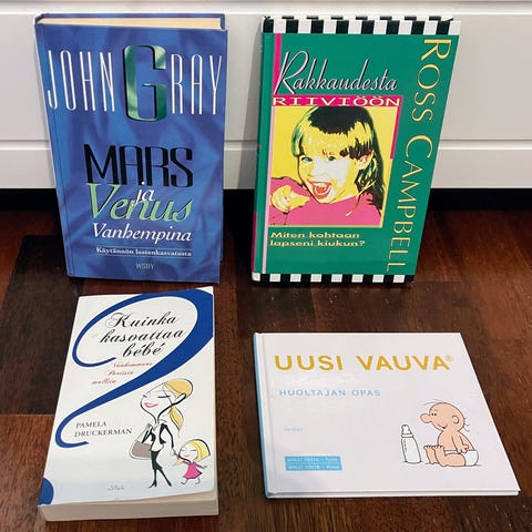 Setti kirjoja vanhemmuudesta, kasvatuksesta ja lapsen kehityksestä.