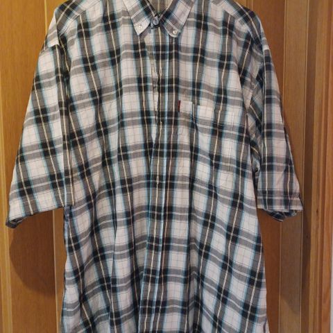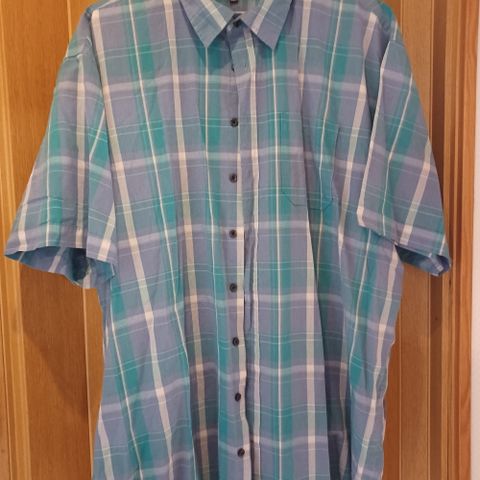 Hillitysti raidallinen kauluspaita. Tyylikäs turkoosinsävyinen. Easy care. Merkki RossRiver. Koko 5XL.