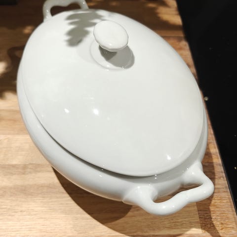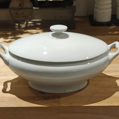 Myydään kaunis, ranskalainen, retro kannellinen liemikulho.