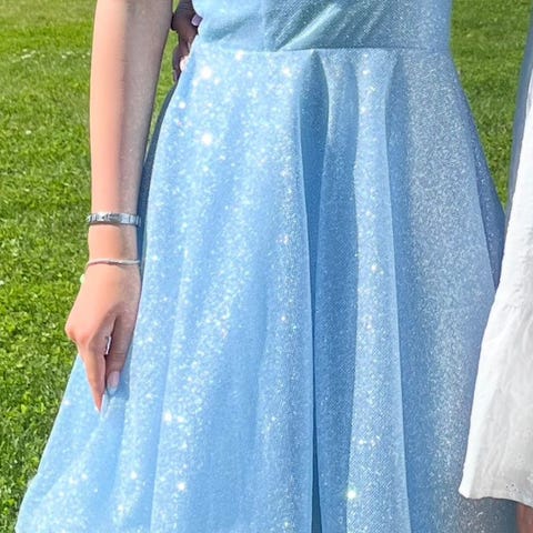 Kerran rippimekkona käytetty olkaimeton Zazabella Dazzling-juhlamekko, koko 32, sopi itselle kokoa S.