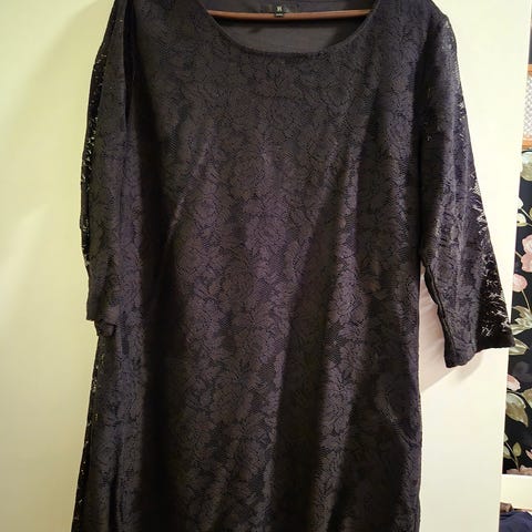 Kaunis Cream kokoХL pitsitunika pitsihame neulemekko neuletunika pitsineuletunika. Vuorikangas alla. Olkahelma noin 95cm. Joustaa paljon leveydestä, Kainalokainalo 56-57cm x2. On ihan lämminkin ja toisaalta ilmava kun neulos on pitsimäistä. Ei ole pikimusta, ennemmin antrasiitti tai tumman harmaa tai haalistunut musta, sellainen maalaisromanttinen tyyliin sopiva kulunut väri. Kaunis ja paljon romanttisia yksityiskohtia, trumpettihihat, nauhoja, laskostettu helma. Todella kaunis päällä!