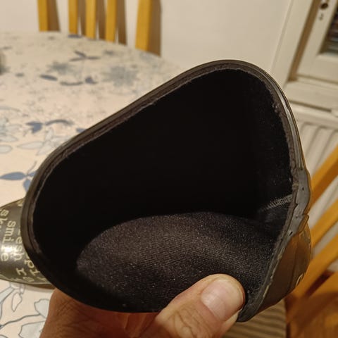 Siistit ja ehjät kumisaappaat. Muutaman kerran käytetty. Erikoisen kaunis malli. Helmikoreistepannan saa nostamalla pois halutessaan.