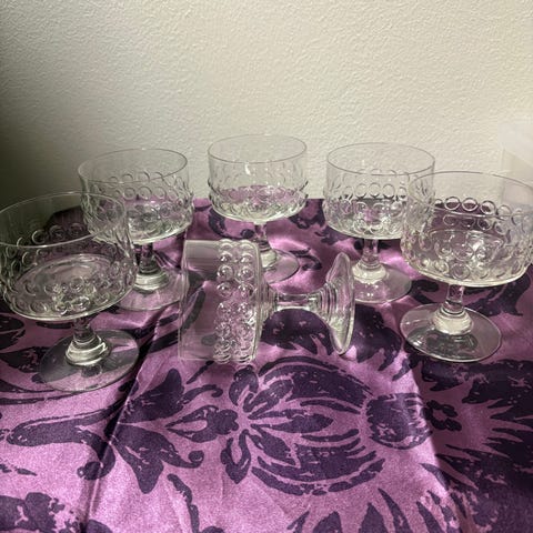 Nanny Still Grappo Cocktaillasi. Nanny Stillin Riihimäen Lasille suunnittelemaan Grappo-sarjaan kuuluva kirkas jalallinen Cocktaillasi. Lasin korkeus 10 cm, halkaisija 7 cm.