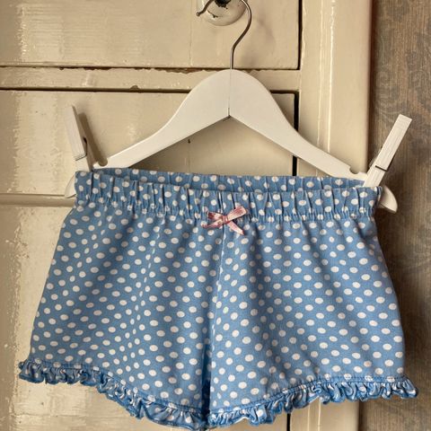 Lasten siniset trikooshortit perhosen kuvilla, H&M, koko 98. Vyötäröllä kuminauha ja kiristysnauha.