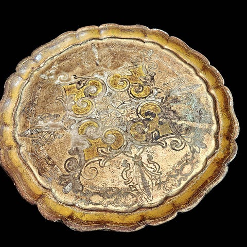Myydään haikeudella tämä äärimmäisen kaunis, yksityiskohtainen ja käsinmaalattu tarjoiluastia, jonka alkuperä on Italiassa. Astia on ollut pienen italialaisen kahvilan esineistöä, joka tuli jäämistönä huutokauppaan. Astiassa on erittäin kaunis, suorastaan majesteettinen kuvionti ja värien syvyys sekä pintojen patina on silmiä hivelevää. Upea esine mihin tahansa esillepanoon.