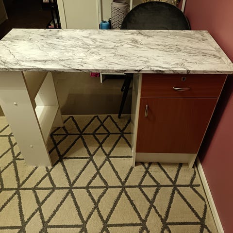 Annetaan kuvanmukainen pöytä, peili haljennut. Muuten ihan ok kunnossa, pientä laittoa