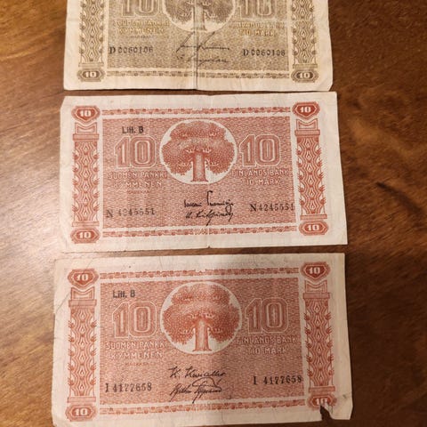Suomen markkasetelit, 1, 5, 10mk