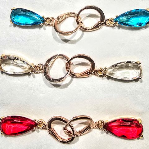 Korvakorut käytettyjä ja erinomaisessa kunnossa. Pituus lukon kanssa - 4,5 cm (kristalli - 2,2x1,2 cm).