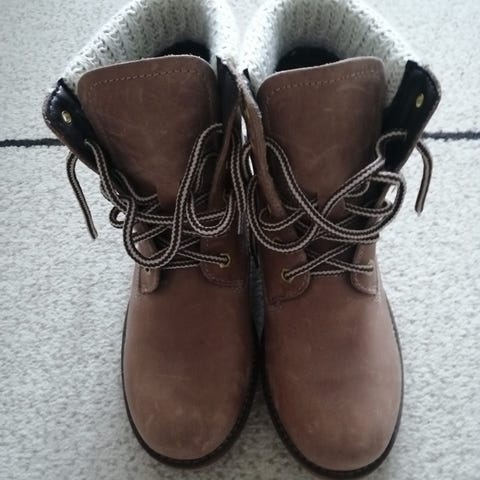Naisten ruskeat nahka kävelykengät. Tukevamalli raakakumi pohja. Kuin uudet.