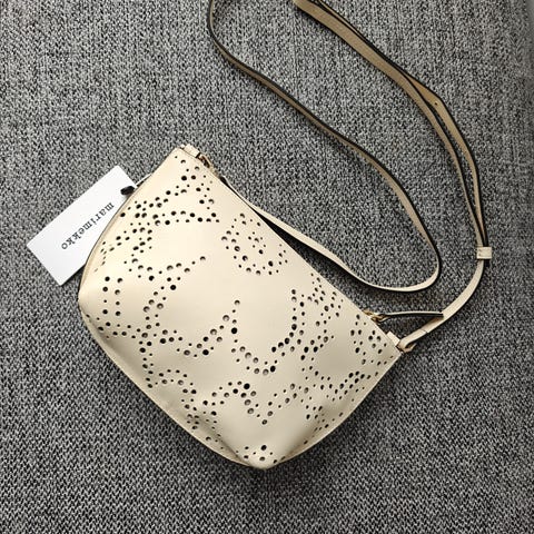 Laukussa on säädettävä ja irrotettava olkahihna, jossa on Unikko-kuvio. Siinä on myös vetoketjukiinnitys ja sisätasku vetoketjulla.