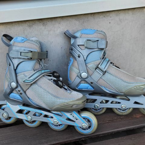 Käytetyt rullikset ja vähän käytetyt rannesuojat.