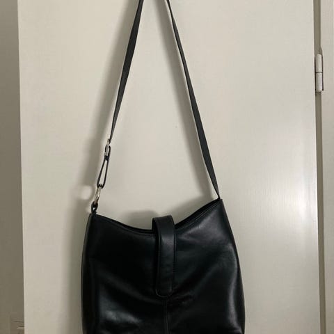 Käyttämättä jäänyt kaunis käsilaukku, leveys 28 cm, korkeus 18 cm, pohjan leveys 7,5 cm. Sisäpuolella pieni tasku ja vetoketjullinen tasku. Laukun ulkopuolella yksi vetoketjullinen tasku. Laukun hihnan voi vaihtaa halutessaan lyhyempään tai pidempään olkalaukuksi. Materiaali vaikuttaa että olisi nahkaa, en ole varma . (Lahjaksi saatu)