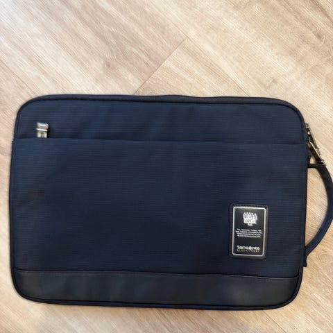 Musta virheetön pyörillä varustettu Samsonite Synaptic laukku, jossa sisään painettava vetokahva sekä kantokahva. Sisällä irroitettava tilanjakaja, jossa useita tavarataskuja.