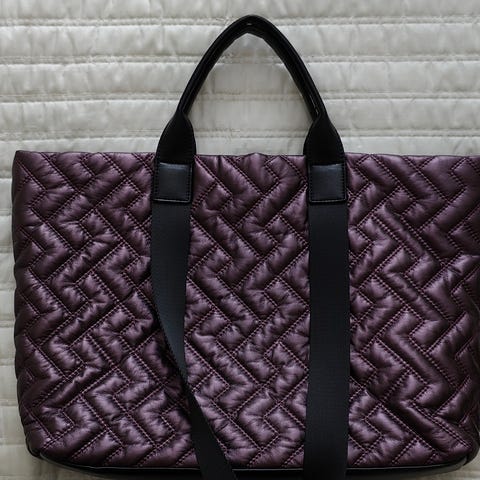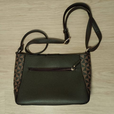 Gaborin tummanruskea nahkalaukku. Etupuolella koriste käärmekuviointi ja takapuolella vetoketjutasku. 2 käsi-/olkahihnaa sekä irrotettava säädettävä pitempi olkahihna. Sisäpuolella vetoketju tasku ja kaksi avotaskua. Vetoketju suljenta. Vetoketjun reunassa hieman nahan kulumista. Laukun korkeus on 32 cm, leveys 40 cm ja pohjan leveys 13 cm.