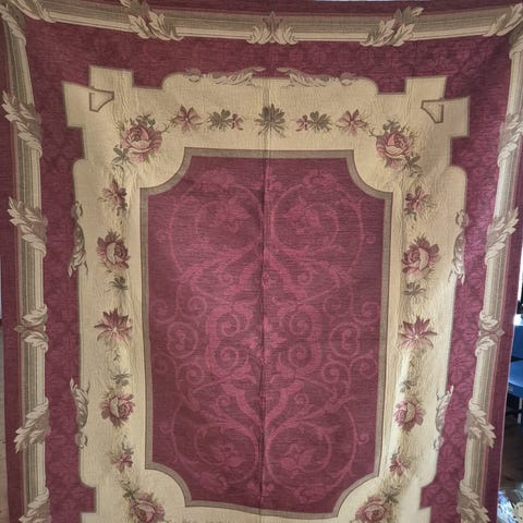 Voi käyttää molemmin puolin. Vaalealla pohjalla vanharoosa lehdykkäkuviointi ja toisella puolella päinvastainen väritys. Nouto + käteismaksu.