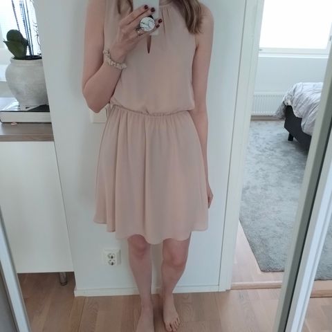 Hollisterista ostettu denim-tyyppinen raitamekko, koko M/38. Kangas joustaa hieman, puuvillaa 95% ja elastaania 5%.
