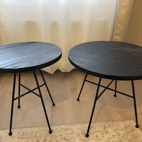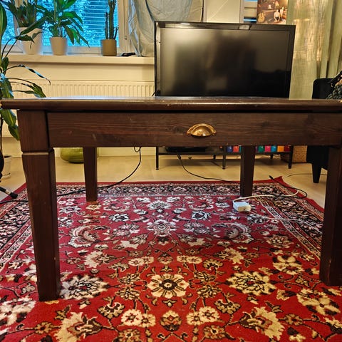 Kaksi erilaista sohvapöytää, kaikkia käytetty jossain kohti elinkaarta myös tv-tasona 😅