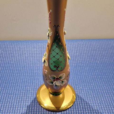 Vihreä, hienokuntoinen vintage kullattu Bohemia maljakko, 25cm korkea.