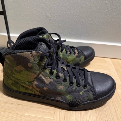Varustelekasta ostetut nahkaiset varrelliset sotilaskengät. Pohjat uusittu!