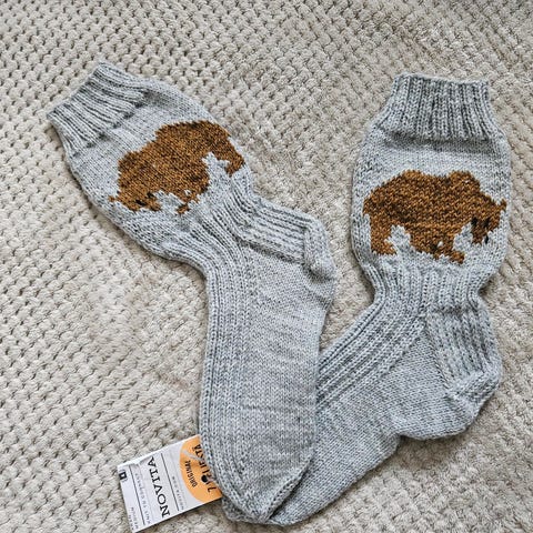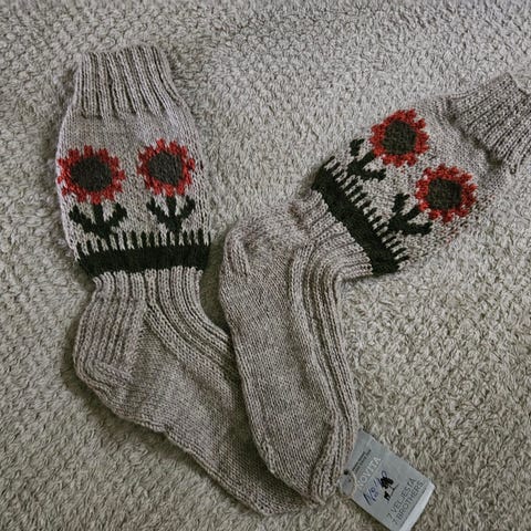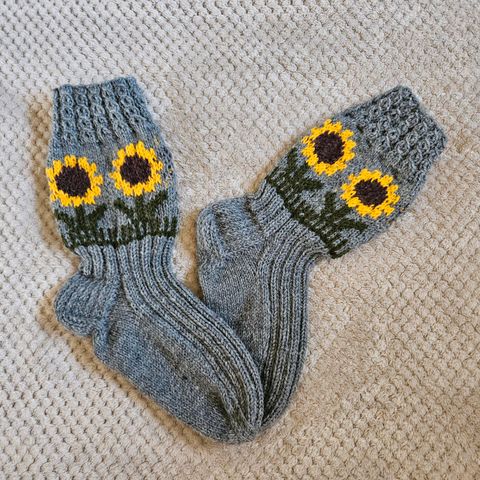 Auringonkukkakuvioiset villasukat (pohjaväri harmaa), koko 41