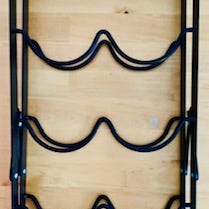 Metallinen viini ja lasi teline seinälle 5kpl paikka viini pullolle 4kpl.lasille kor.46cm pituus 63cm paksu metalli ja tukeva