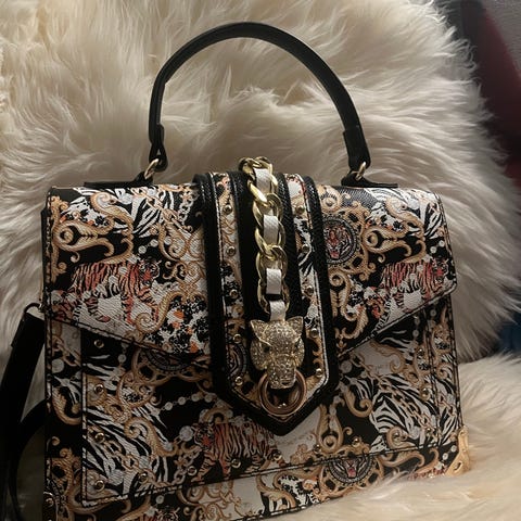 Aito Jonathan Adler käsilaukku, kuin uusi, täysin puhdas, (hieman käytetty, mutta koska laadukas, niin edelleen aivan uuden veroinen), värit syvän tummansininen/vaalea/ruskea; joten klassisen kaunis moneen menoon.