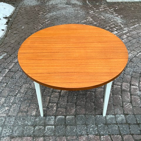 Myydään tiikkinen ruokapöytä jatkopalalla. Tarkat mitat 79,5cm x 120cm, jatkopala 60cm, korkeus 73cm. Pinnassa ajan patinaa sekä yksi pitempi naarmu, jatkopala todella siisti.