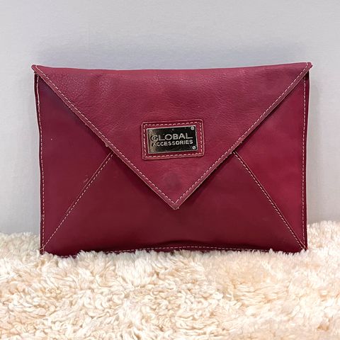Ihana nahkainen clutch, jossa rusetti koristeena läpässä. Magneettikiinnitys. Sisällä pieni vetoketjutasku. Koko n. 24cm x 14cm.