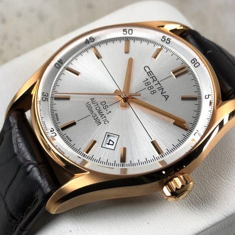 Certina DS Caimano on valinta miehille, jotka arvostavat minimalismia ja tyylikkyyttä. Tämä kello ei ole vain ulkonäöltään minimalistinen, vaan siinä on myös 38 mm:n kuori. Yhdessä 9 mm:n kuoren paksuuden kanssa se on täydellinen valinta puvun kanssa käytettäväksi. Se ei tartu paidan hihansuuhun.
