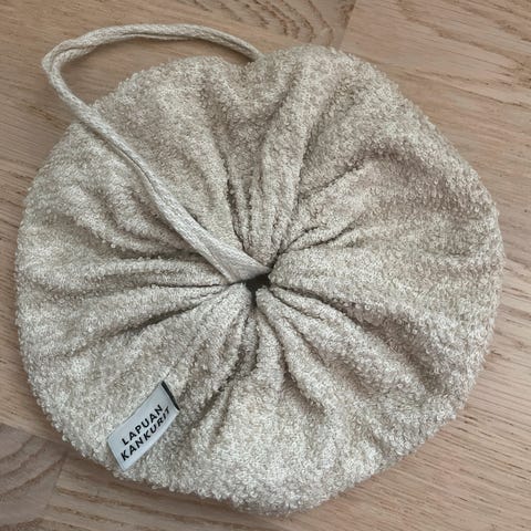 Materiaalina kestävä ja pehmeä puuvillalanka. 100% puuvillaa. Pesu 40°C.
