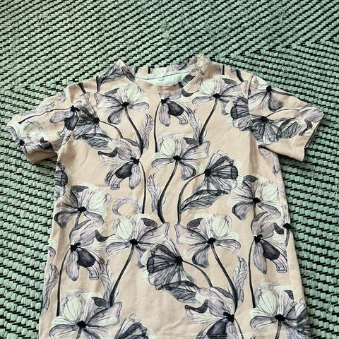 Muutaman kerran käytetty mansikkapaita röyhelöllä koossa 122. Diy. Paapiin vanhempaa tuotantoa oleva kangas. Ilmeisesti äiti tykkäsi tästä kuosista enemmän kuin lapsi, eikä päässyt käyttöön. Nyt eteenpäin jollekin toiselle :)