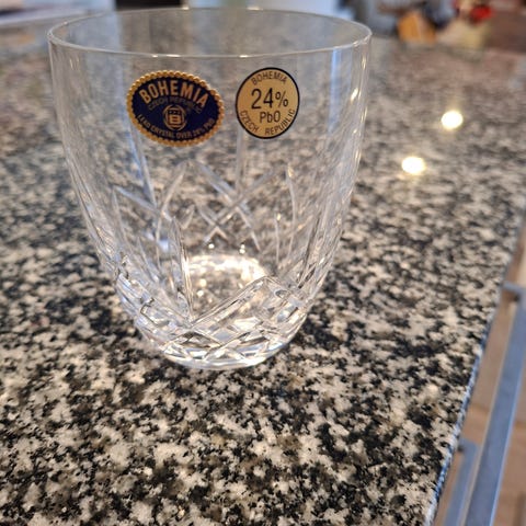 Kauniit aidot kristallilasit, 6 kpl, Bohemia kristallia. Käyttämättömät. Korkeus 14cm, suuaukon halkaisija 7cm. Tarrat paikallaan. Tsekissä valmistettu