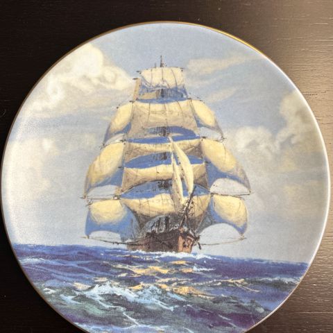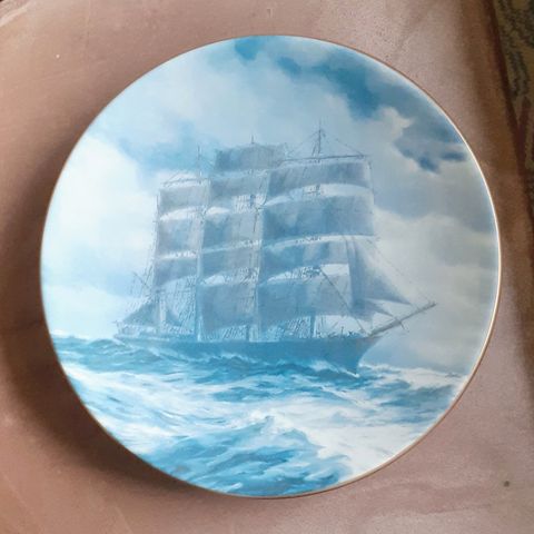 Arabia, Adolf Bock, Merilinja, Purjealus 1920-luku VI seinälautanen, lautasen halkaisija n.22,5cm