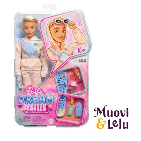 Barbie Ken Fashionistas #154 on rohkea ja persoonallinen lisä Ken-nukkien maailmaan. Tämä Fashionistas-malliston Ken-nukke tuo leikkihetkiin uutta väriä ja asennetta purppuran sävyisillä hiuksillaan ja urbaanilla pukeutumisellaan. Nuken hiukset ovat näyttävästi muotoillut, ja niiden laventelinen väri tekee nukesta erityisen erottuvan. Kenillä on yllään kirkas ruutupaita, joka yhdistyy tyylikkäisiin mustiin denim-housuihin. Mustat tennarit viimeistelevät tämän modernin ja trendikkään kokonaisuuden, joka sopii niin kaupunkiteemaisiin leikkeihin kuin osaksi Barbie-maailman muotinäytöksiäkin.