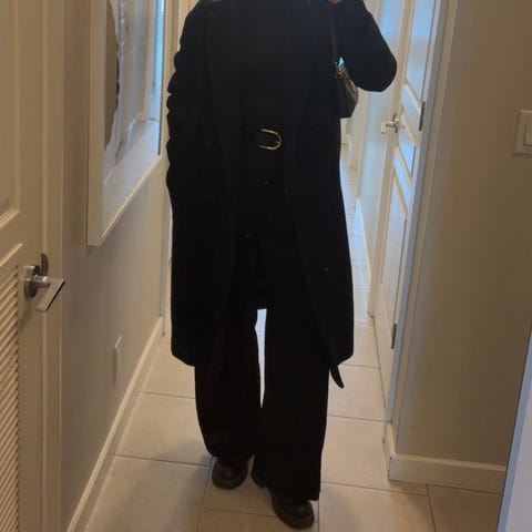 Myydään käytetty mutta erittäin hyväkuntoinen musta COS villakangastakki. 60% villaa, 40% nailon. Helmassa takana halkio. Vyökiinnitys ja kaksi taskua edessä. Ei vuorta.