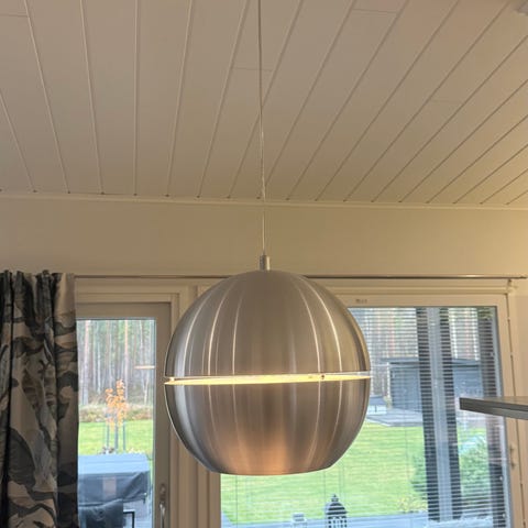 Iso, industrialtyylinen kattovalaisin, linkistä lisätietoja: https://www.tuppukaluste.fi/trio-gotham-riippuvalaisin-6-osainen-antiikkihopea/6783/