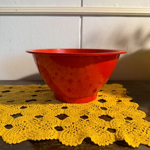 Väri oranssi. Fiskamin 1702. Halkaisija 25cm, korkeus 12cm. Sarvis 435 salaatti otin.