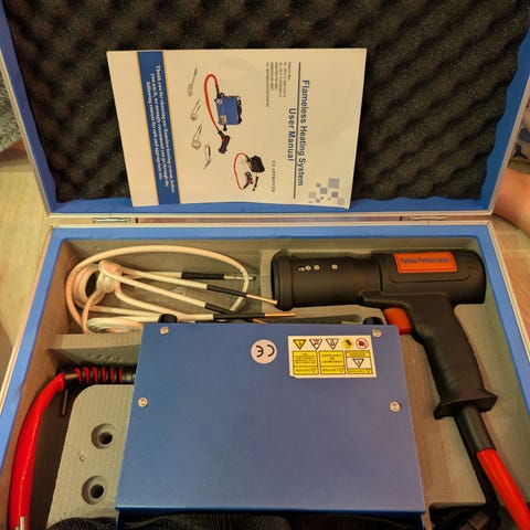 Kätevä kannettava induktiokuumennin autotalliin pulttien yms. irrottamiseen. Teho 1000W.