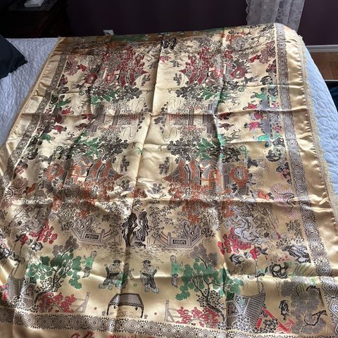 Silkkisen tuntuista lankaa nukka. Ehyt. Leveydessä ei ole vielä hapsut, niiden pituus on n 5 cm. Hinta 30 ja toimitus