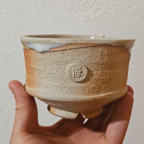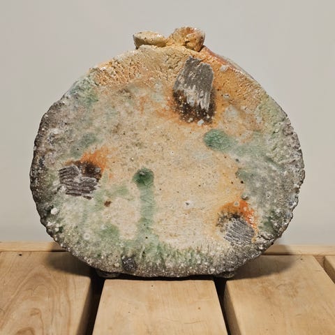 Shino-lasitteinen taidekeramiikka - maljakko Japanista. Taiteilija Yasuo Tamaoki.